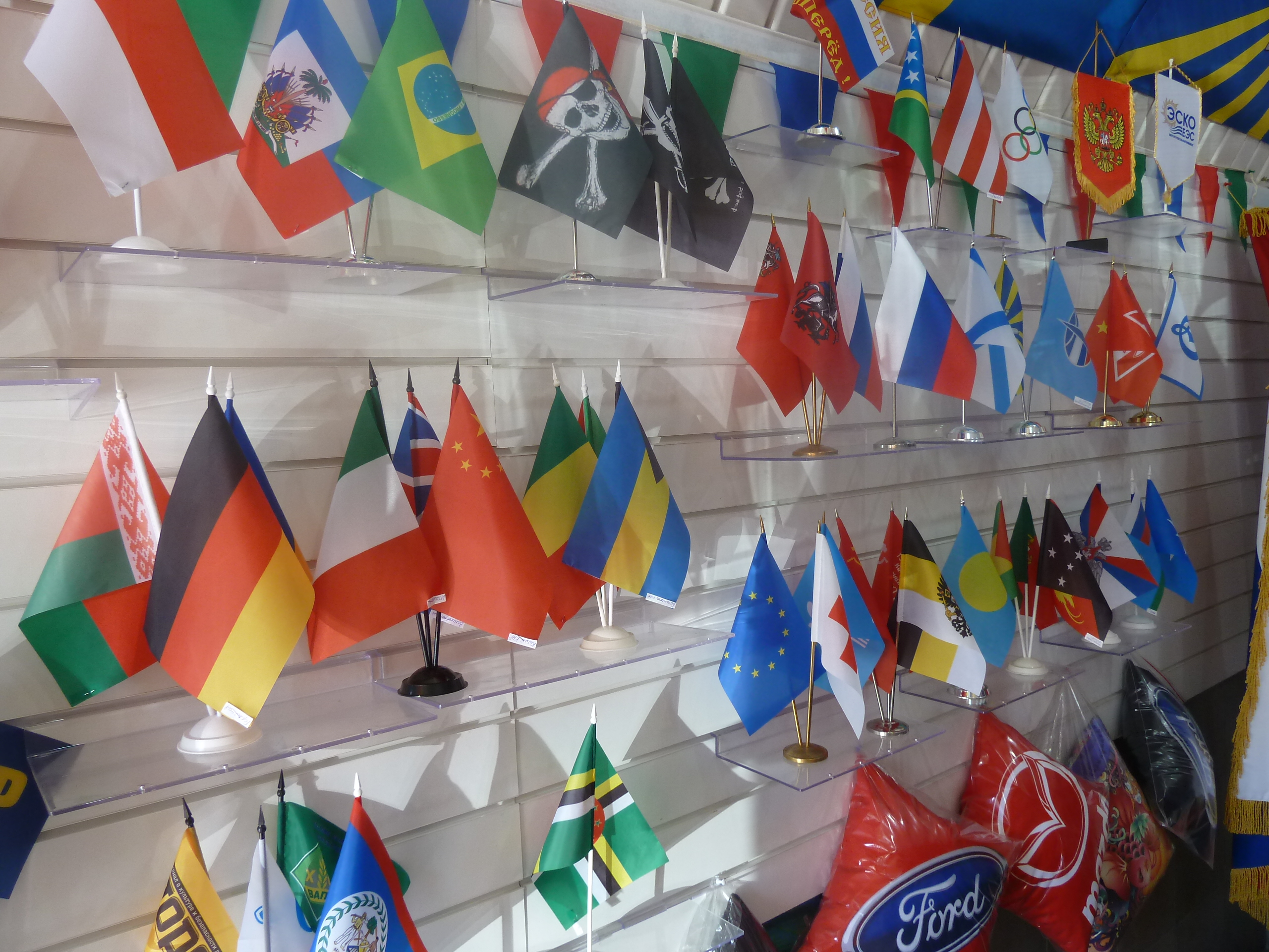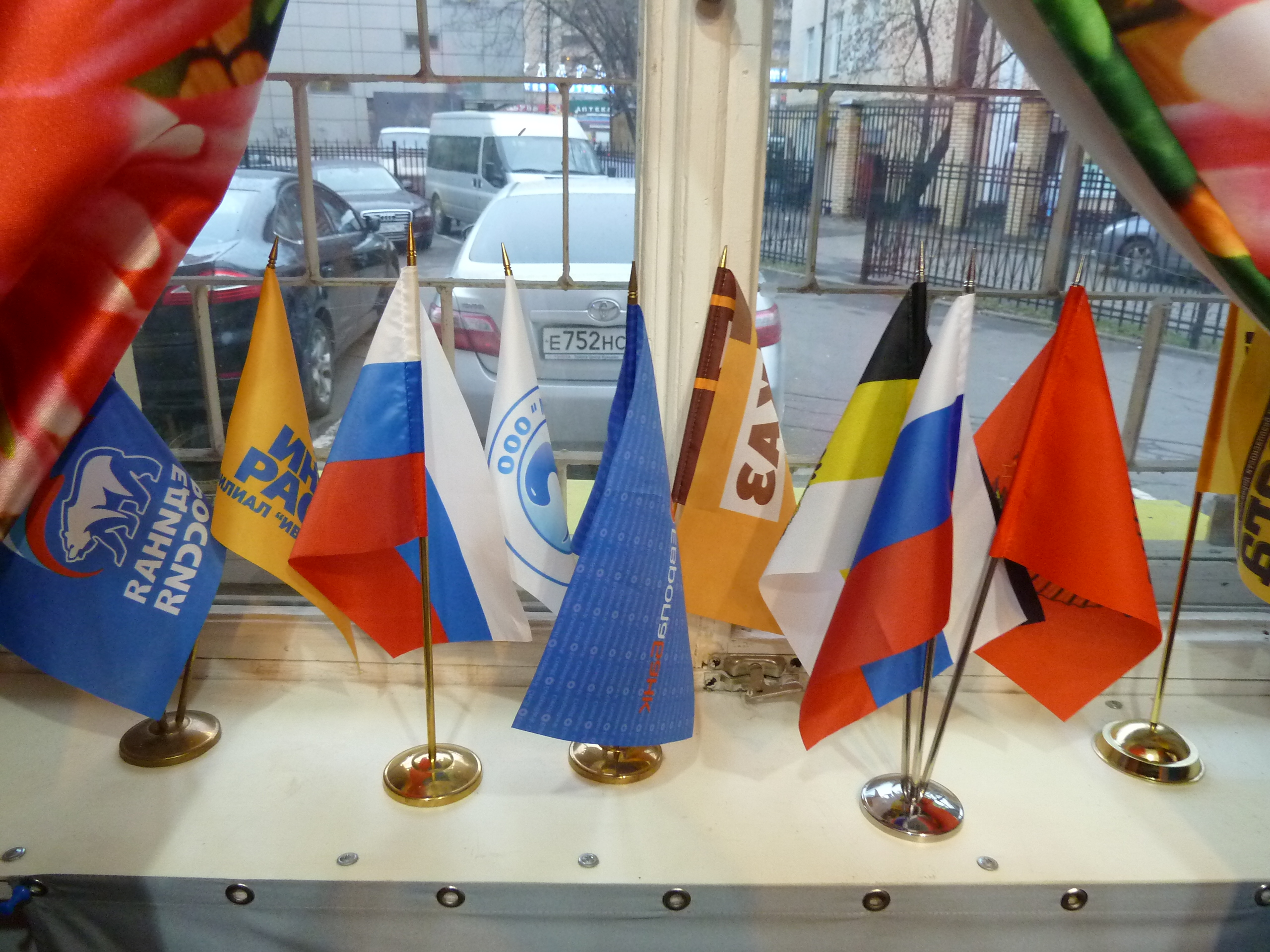 - во-первых, настольные флажки с миниатюрной копией фирменного флага компании или государственных и национальных флагов;